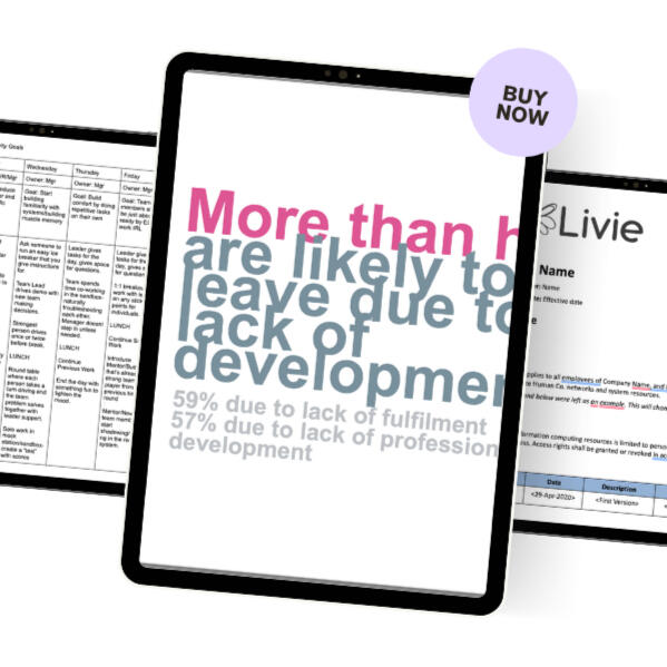 Say goodbye to chaotic first days and awkward “uhh… what now?” moments. Livie’s Onboarding Toolkit gives you everything you need to roll out the red carpet for your new hires—from welcome emails to day-one checklists.Includes: